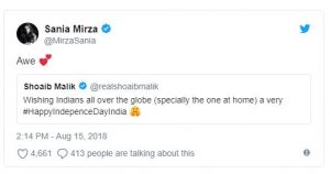 Home/Shoaib Malik Wished Indians And Sania On Independence Day, Sania Mirza Loved It./sani-mirza-tweet3 sani-mirza-tweet3